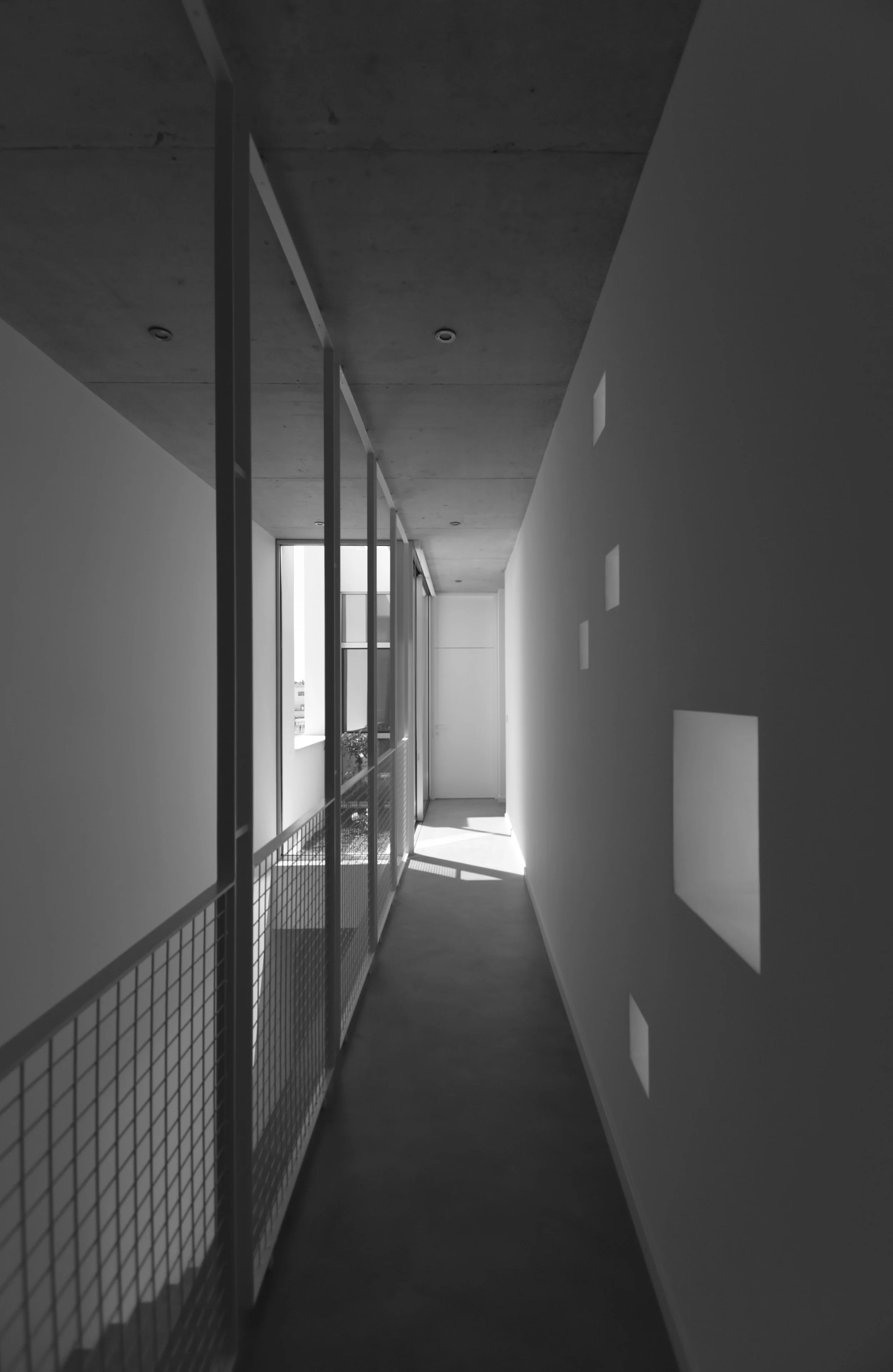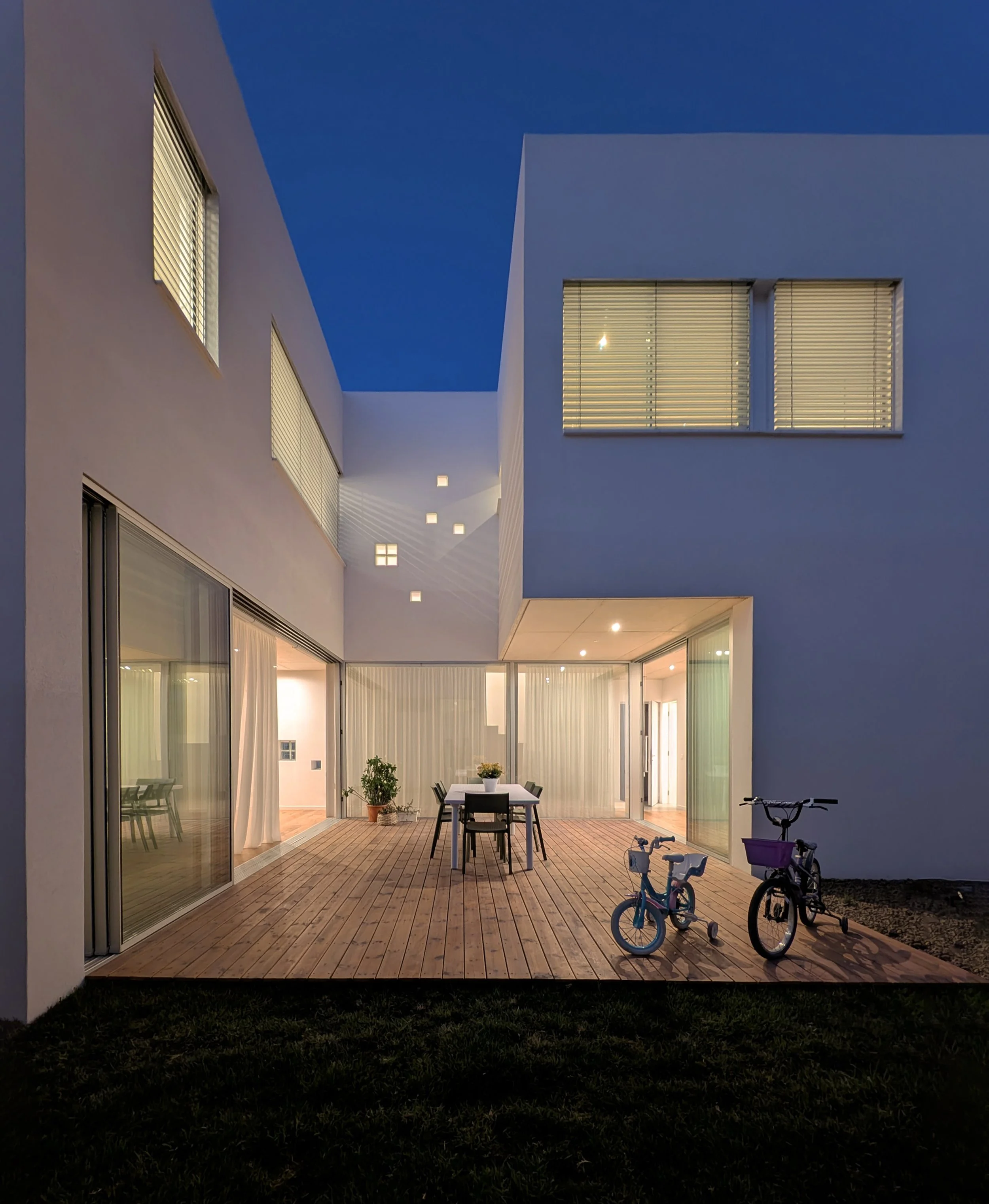 In selected parts of the exterior walls, small and large glass blocks are built in. These let beams of light enter the interior during the morning and afternoon hours. Some of these glass blocks are openable, helping air flow through the house like the traditional “arseres”, allowing for natural cross-ventilation.