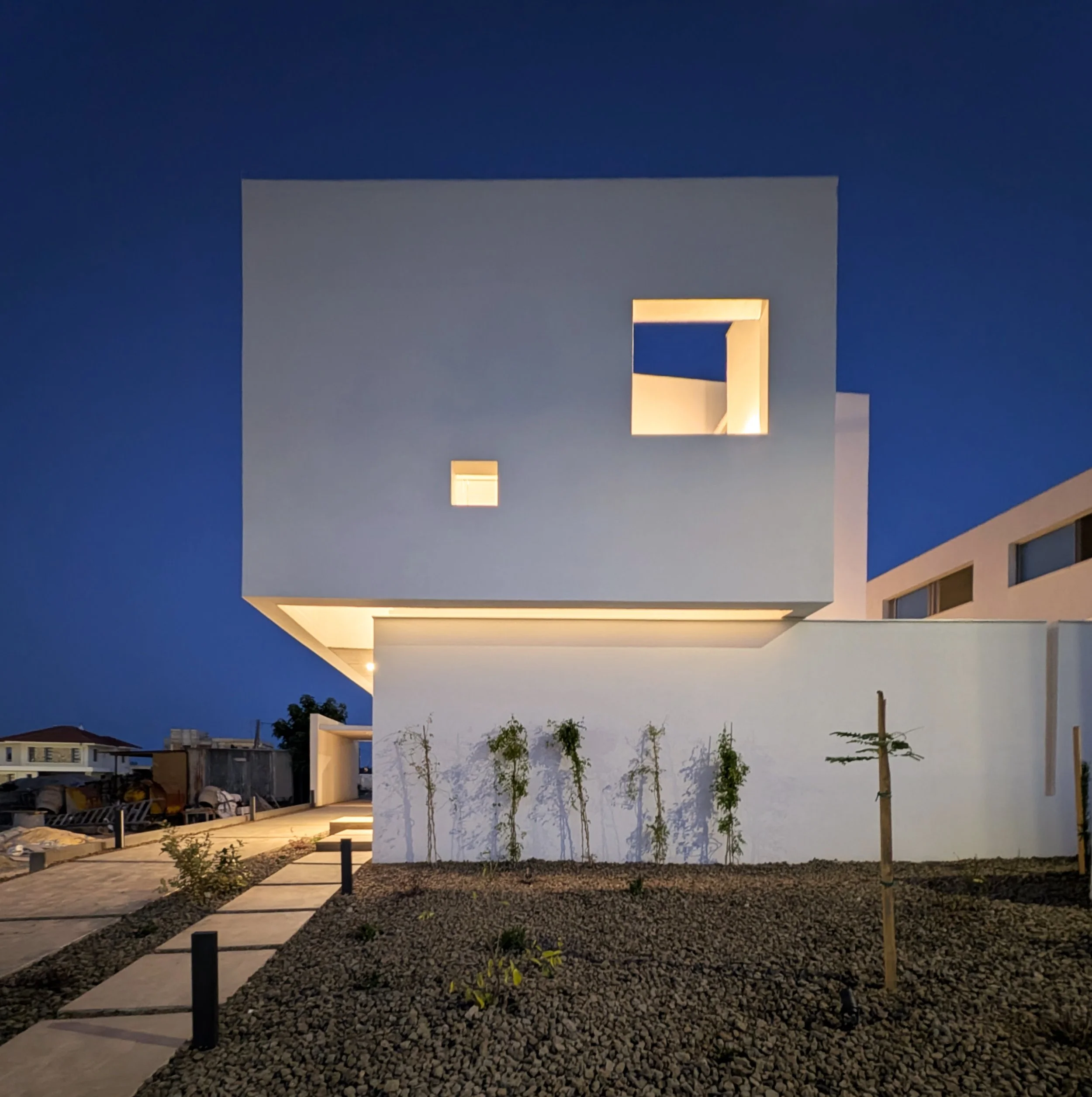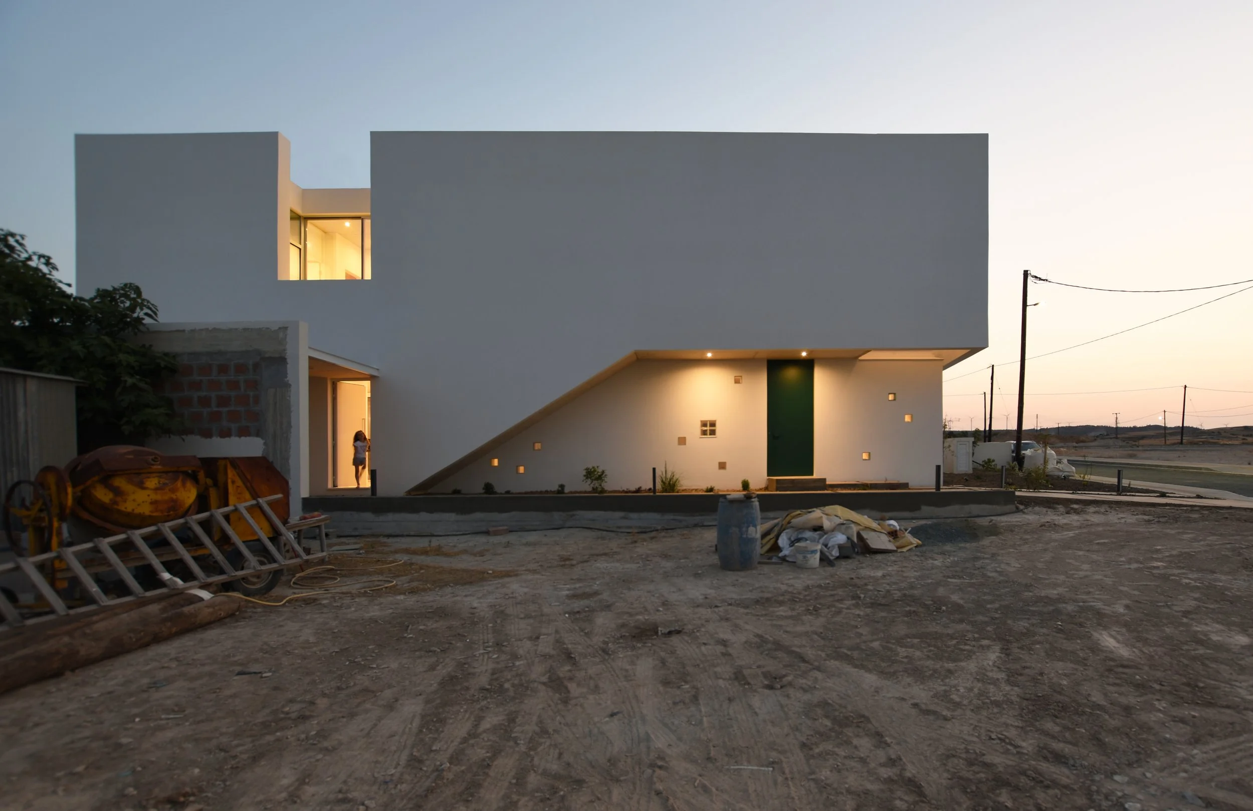 The proposal seeks to redefine the concept of “mantrótoichos” – the traditional fence wall, a familiar architectural element in our region – not as a barrier, but as a privacy filter, integrated into the detached building system that characterizes most residential areas on the island. The house is set back from the street, and the choice to keep the building mostly closed to the outside, using only a few carefully placed openings and narrow slits, helps ensure privacy and defines the outdoor space as an integral part of the home.