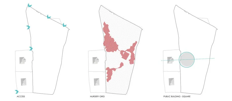 The concept of the nurseries is being restored, creating unique and contemporary spaces within the park. This is achieved through the strengthening of the existing vegetation and the creation of new ‘nurseries’ on a grid which organizes and unifies the whole park.